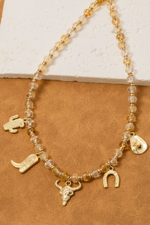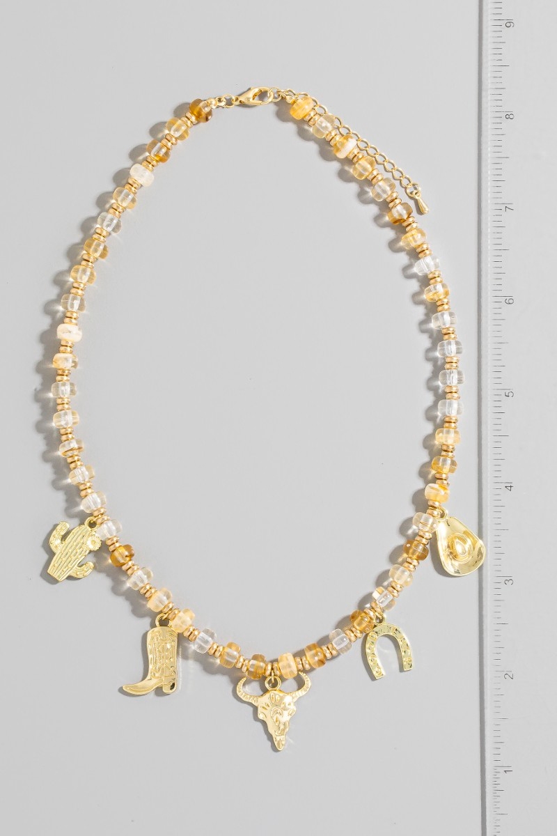 • This necklace displays a fashionable western cowboy charms beaded style. Witness the transformative power of accessories as this piece effortlessly redefines your fashion narrative.