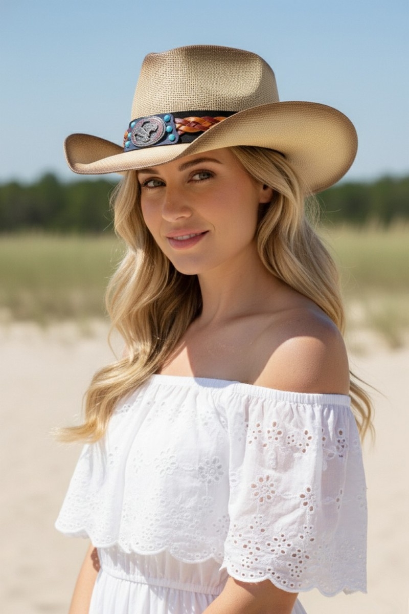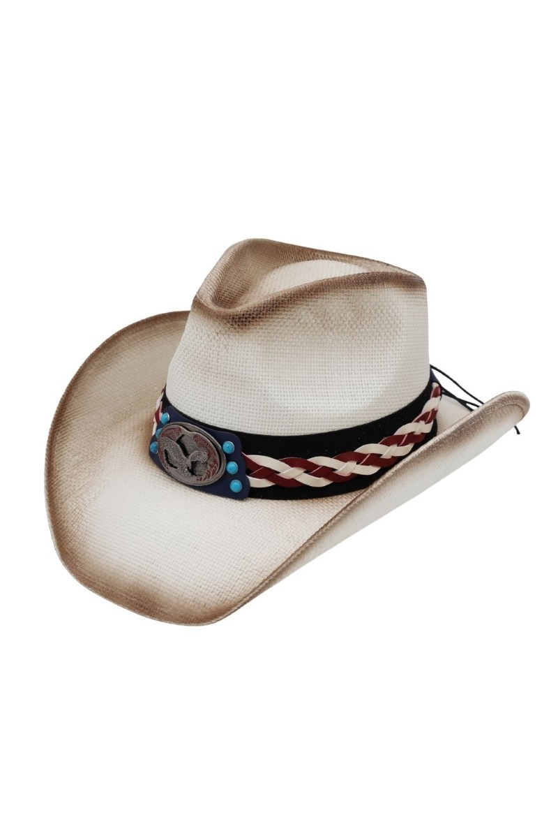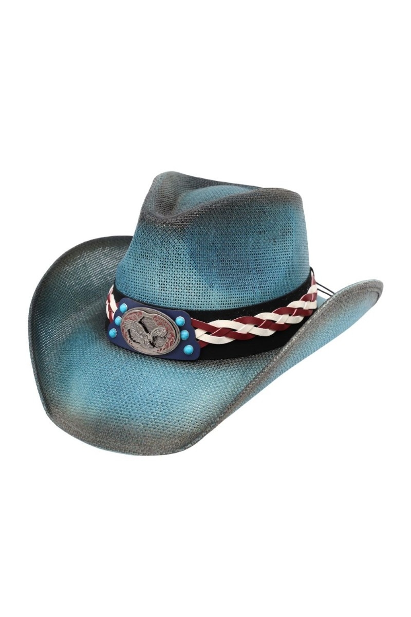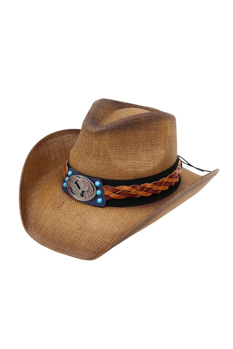 - This cowboy hat showcases a timeless western eagle strap straw style. Discover the perfect balance of subtlety and flair as this cowboy hat effortlessly completes your look.