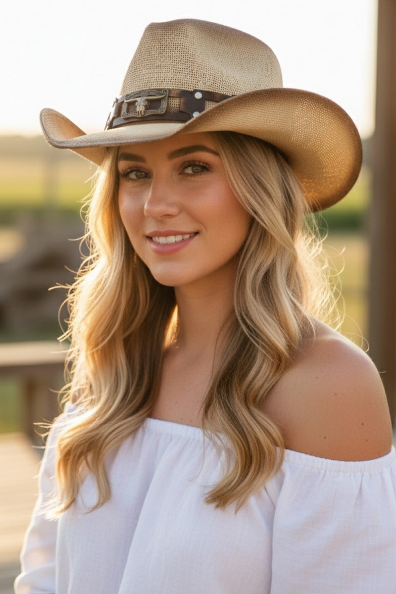Western Concho Strap Straw Cowboy Hat